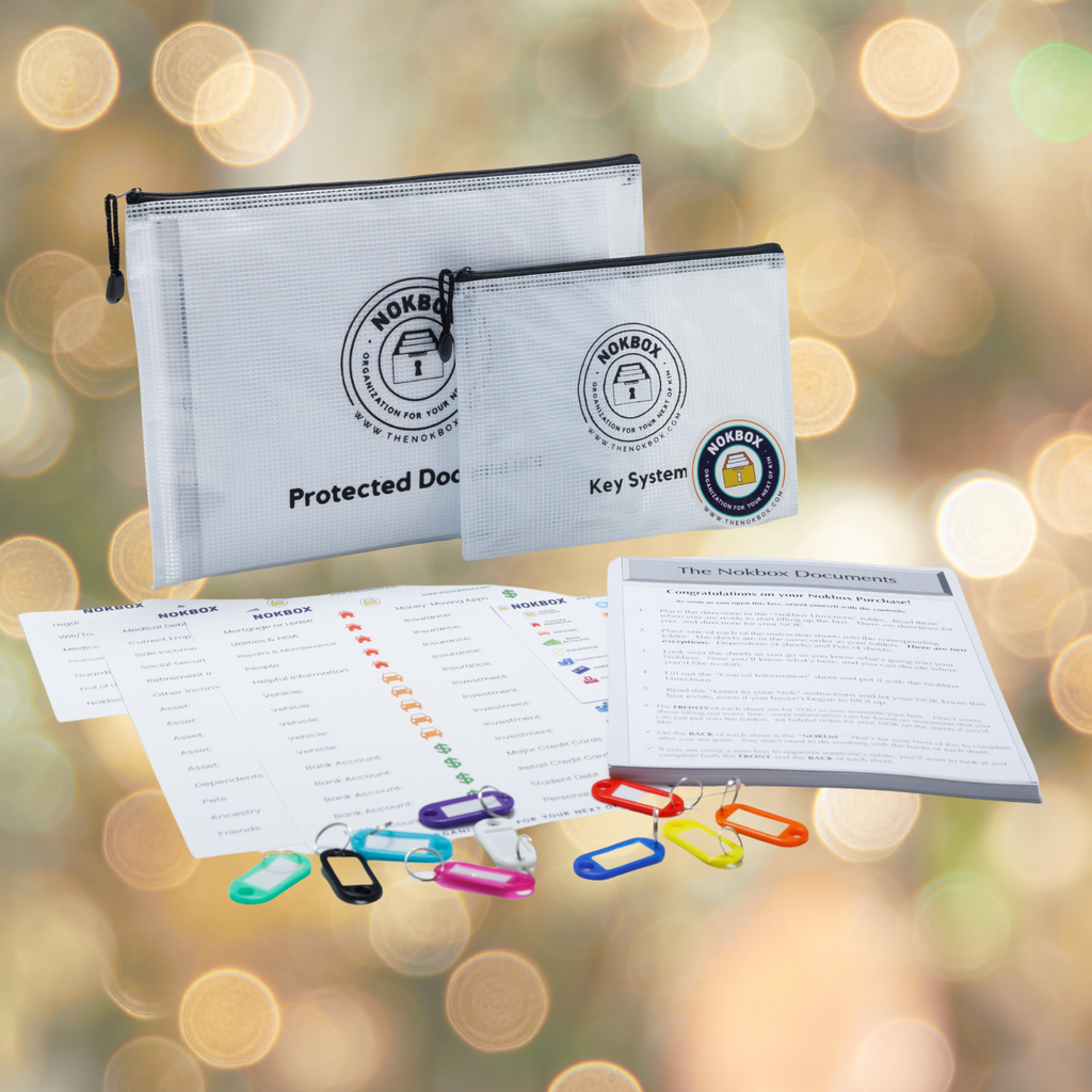 - For your NOK, it provides a brief "getting started after someone dies" list, explains how to use the box, and helps them manage keys & secure documents.